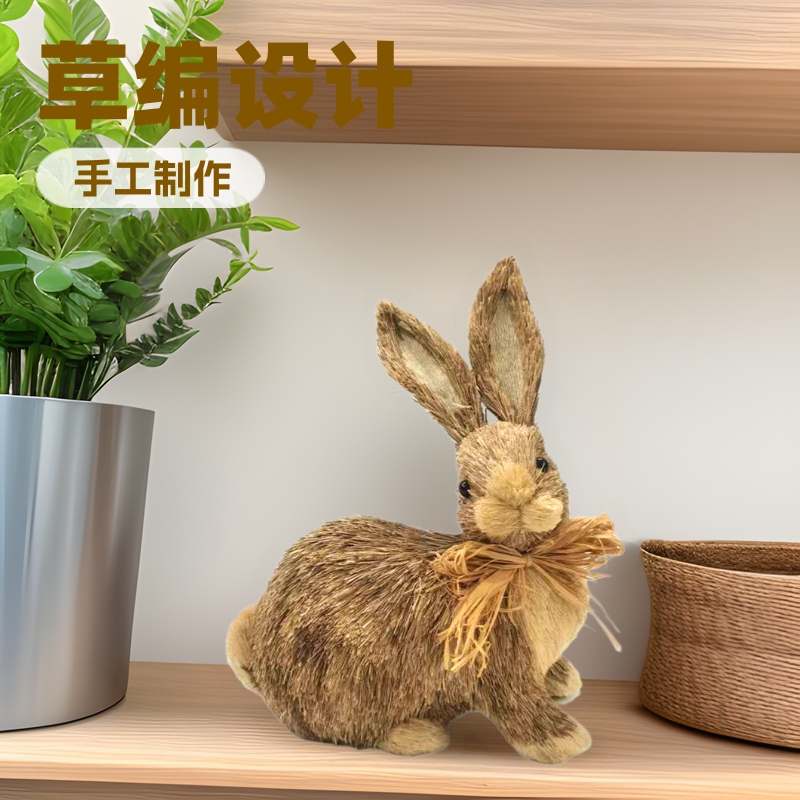 23CM ミニ手作り籾わらウサギの森風景文化クリエイティブイースターオフライン同じスタイルクロスボーダー配送