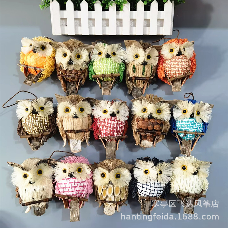 草編みフクロウペンダントホーム置物田園風動物装飾クリスマス手編み工芸品聚財吉祥