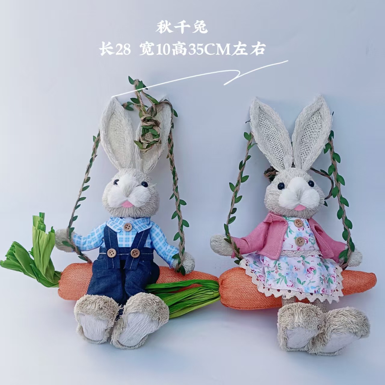 田園風ブランコウサギ草編みウサギストラップロープ手作りウサギ森系誕生日クリスマスプレゼント