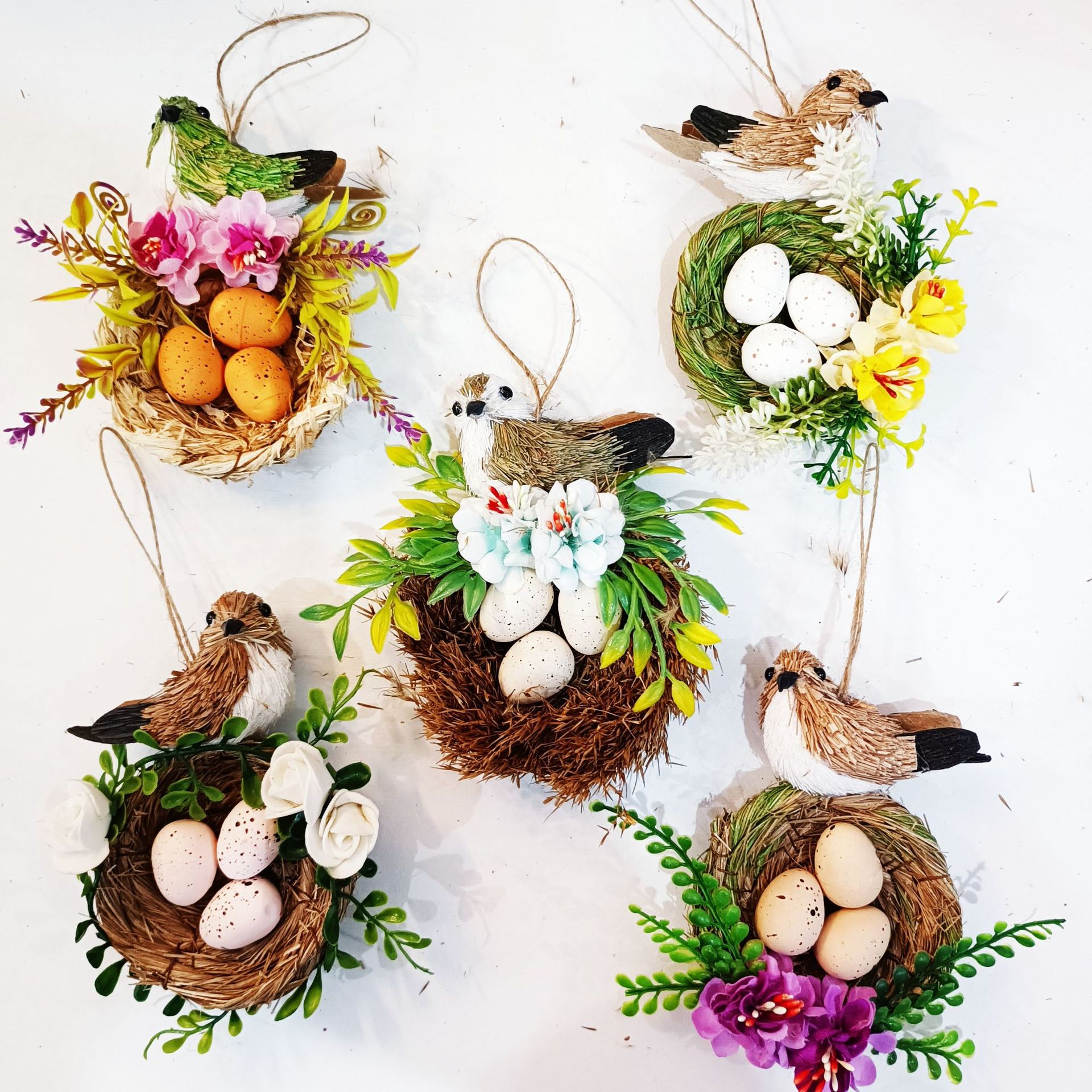 鳥の卵の装飾品、撮影用小道具、草編みの鳥の巣、鳥の飾り、クリスマス装飾アクセサリー、手作りの籐編みの鳥の巣