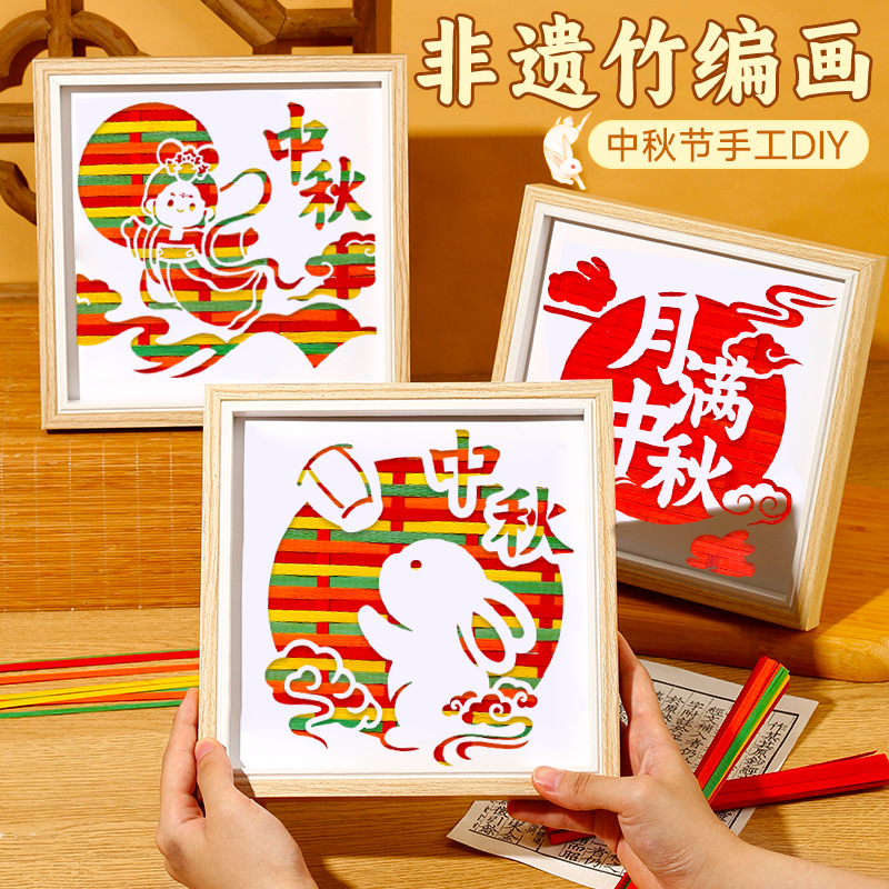 中秋節の手作り竹絵DIY素材パック、子供向け手編み工芸品、無形文化遺産体験、チームビルディング活動
