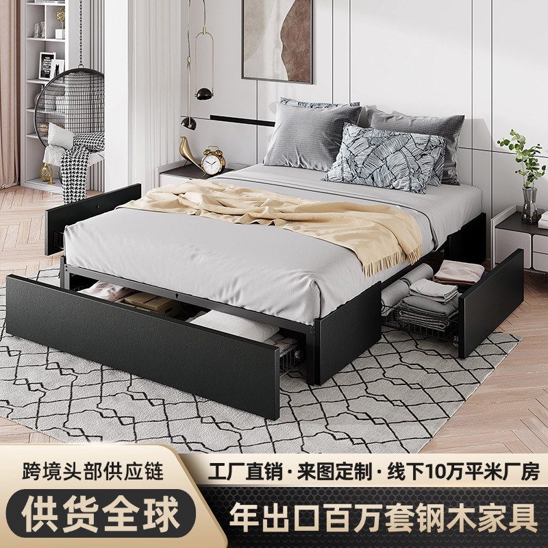 軽くて豪華な寝室用ダブルソフトベッド、収納引き出し付き、ファブリックアイアンベッド、ソファベッドフレーム、KDパッケージを越境供給