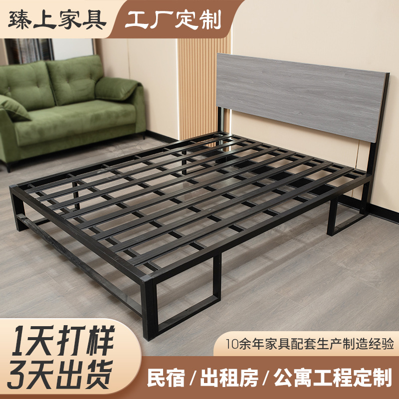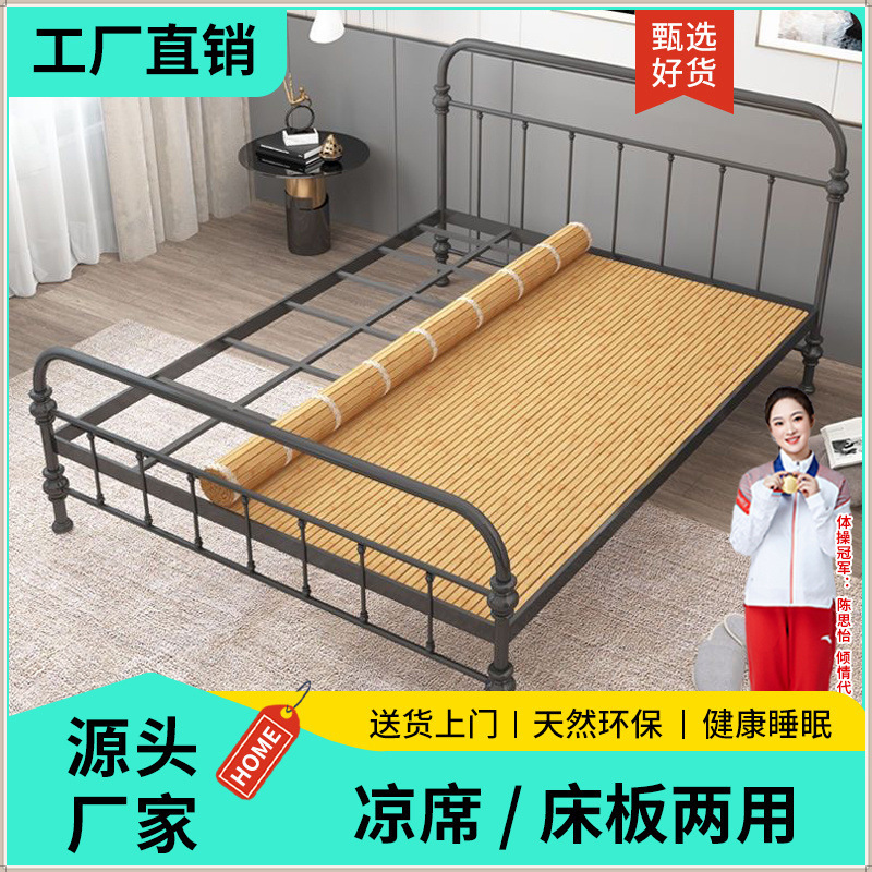 賃貸住宅用の工場直販ベッドフレーム、経済的な鉄製フレームベッド、モダンでシンプルな鉄製ベッド、厚くて強化されたダブルベッド