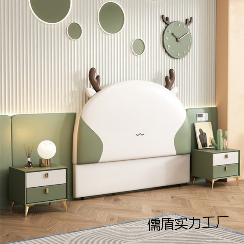 Hc ベッドサイドシングル購入子供用ソフトバッグインターネット有名人の新しい漫画プリンセス床畳無垢材超薄型既製背もたれ