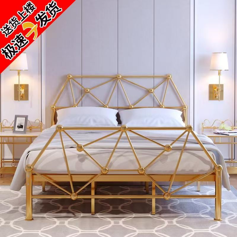 アイアンナイトスカイブラックモダンシンプルベッドアイアンシェルフホームダブルシングルレンタルハウス 1.5m アイアンベッド 1.2m