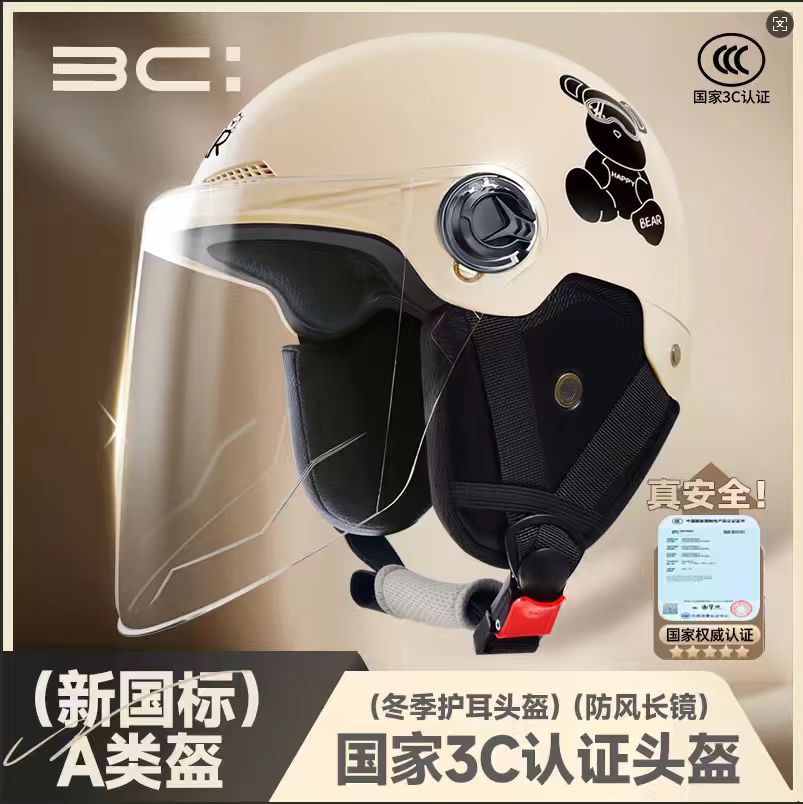 新しいクマヘルメット電気自動車 3c ハーフヘルメット日焼け止め女性の通気性軽量耳保護オールシーズンハーフヘルメット卸売
