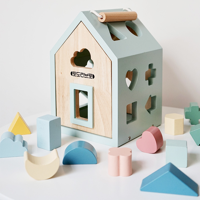 Ins赤ちゃん形状ペアハウス木制大粒积み木握りトレーニングジオメトリ形状塞栓楽智力箱