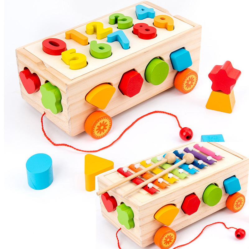 早教益知力開発形状ペアボックス玩具男女の子ドラッグ車積み木多機能赤ちゃん玩具
