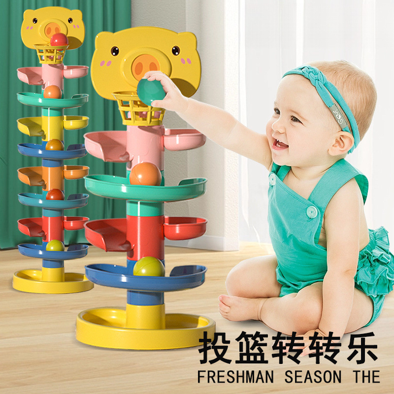 Zhuanzhuanle ローリングボール スライディングボールタワー 赤ちゃんのおもちゃ 赤ちゃんの早期教育 シューティングトラック レインボー
