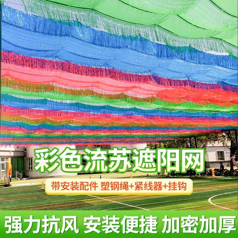 DL [鮮やかな色] カラフルなタッセルサンシェードネット幼稚園厚みのある暗号化された断熱日焼け止めネットプールウォーター