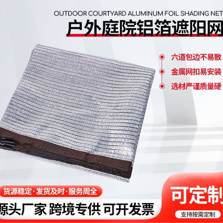 アルミ箔サンシェードネット、暗号化された厚みのあるエッジパンチング、屋外中庭バルコニーアルミ箔サンルーム断熱サンシェードネット