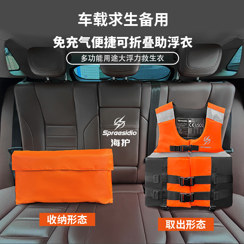 大人用車用ライフジャケット、折りたたみ枕、厚みのある大型浮力ベスト、フローティング、シュノーケリング、サーフィン、救命ベスト、フローティング