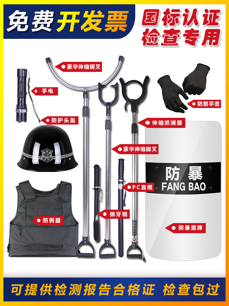 学校・幼稚園用セキュリティ機器 8点セット 防爆シールドヘルメット スチールフォーク タerror対策・暴動対策スーツ セキュリティ機器