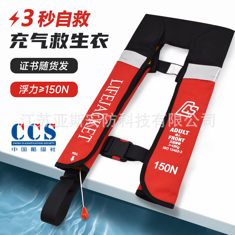 CCS 自動インフレータブルライフジャケットボート作業ライフジャケット大人 150N 船舶検査海上認証書ダブルエアバッグ