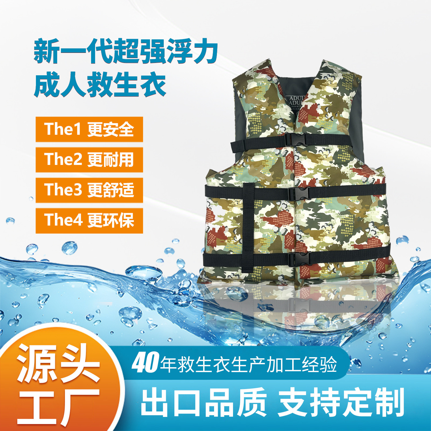 高浮力安全大人用ライフジャケット高品質オックスフォード布高密度フォーム迷彩ベスト屋外ライフジャケット