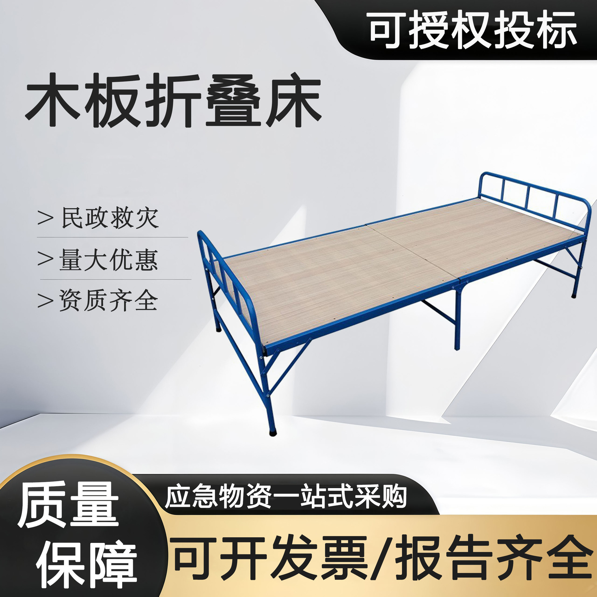 卓恒ブルー折りたたみ木製ベッド民間防災一時休憩ベッド付き簡易野戦救助折りたたみベッド