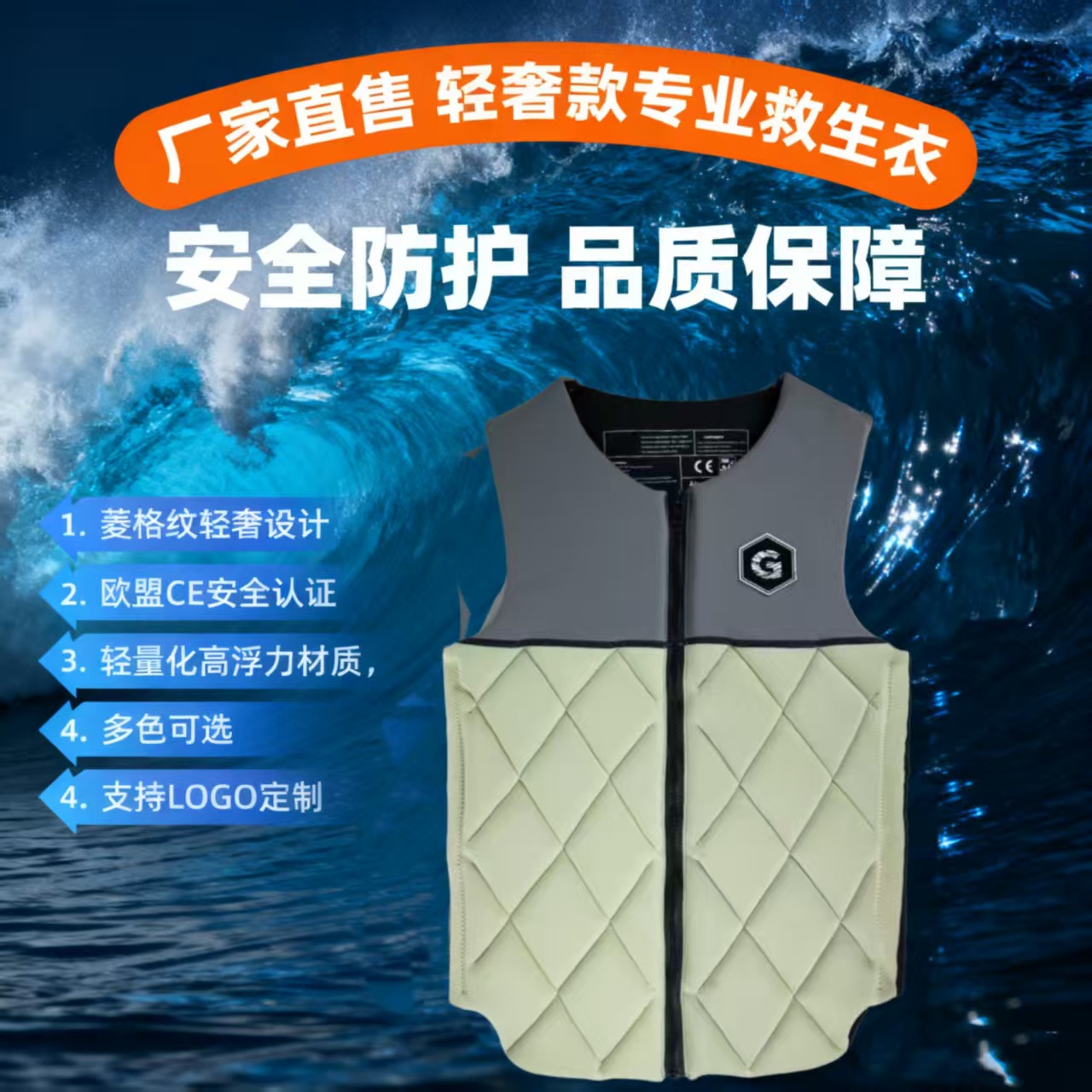 専門は厚い救命胴衣の大きい浮力を厚くします。