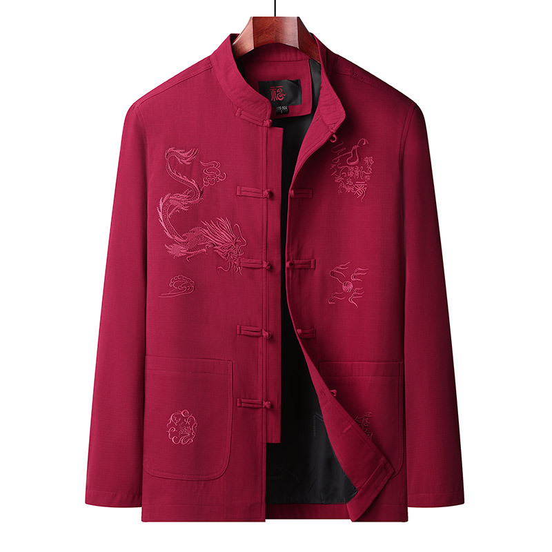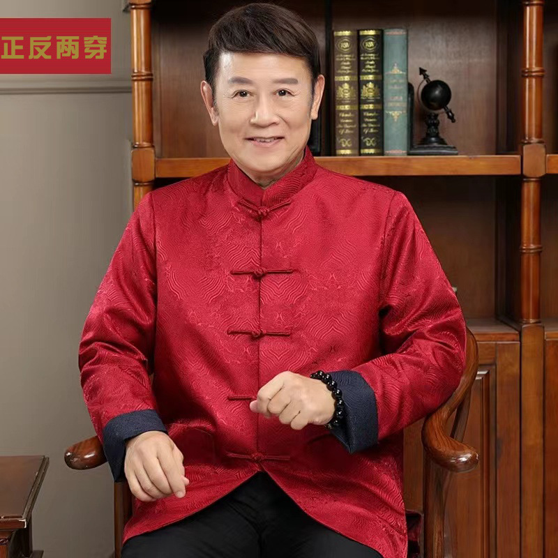 民族風男性唐装秋冬コート唐装男性長袖上着中高年薄綿唐装漢服男性