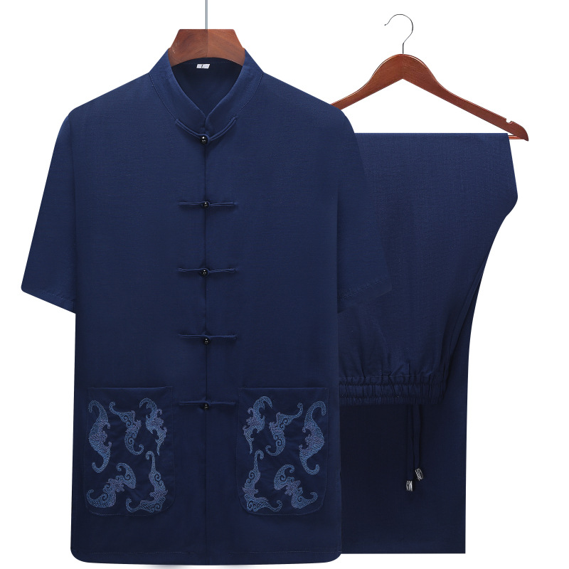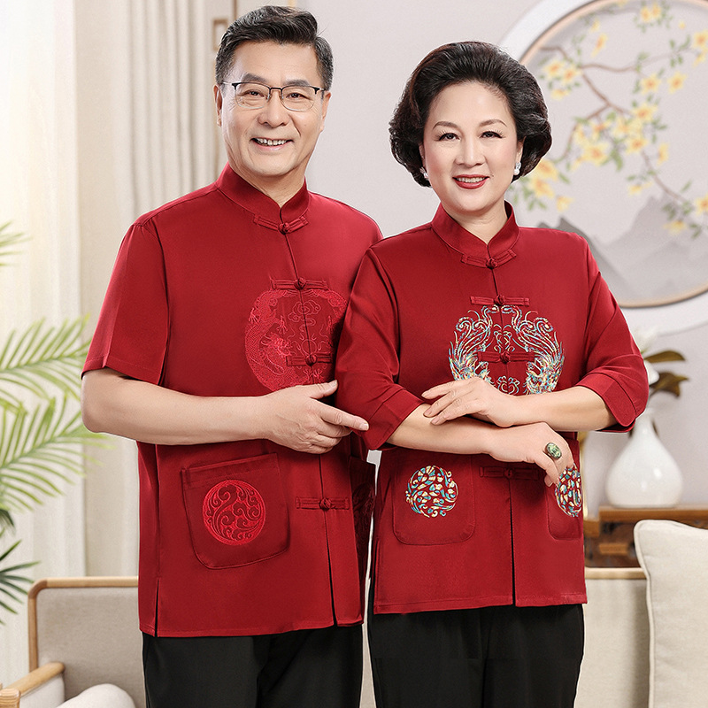 中国風の刺繍レトロ唐装メンズカップルスーツ中高年夏漢服スーツ民族衣装