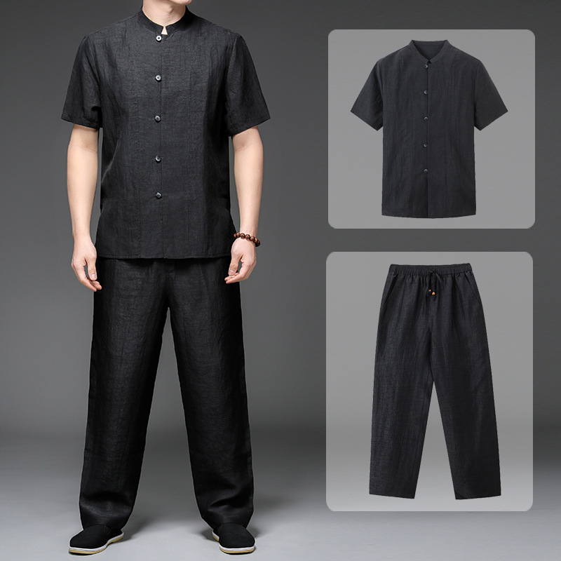 夏唐スーツ半袖ボタン禅スーツ中高年綿麻紳士服リネンメンズ中国風レトロ中国風スーツ