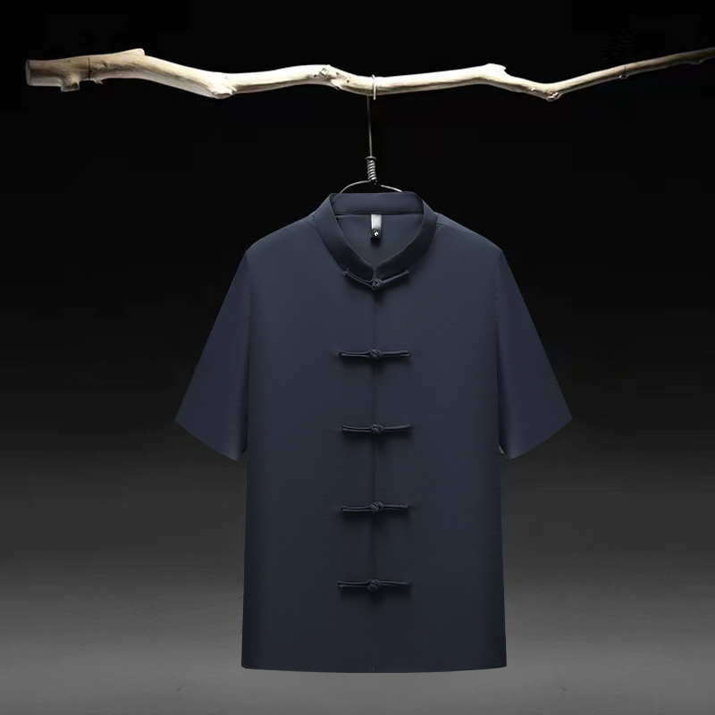 夏の新作メンズ唐装カジュアルスポーツ中国風漢服中高年アイスシルク半袖薄手おじいちゃんお父さん