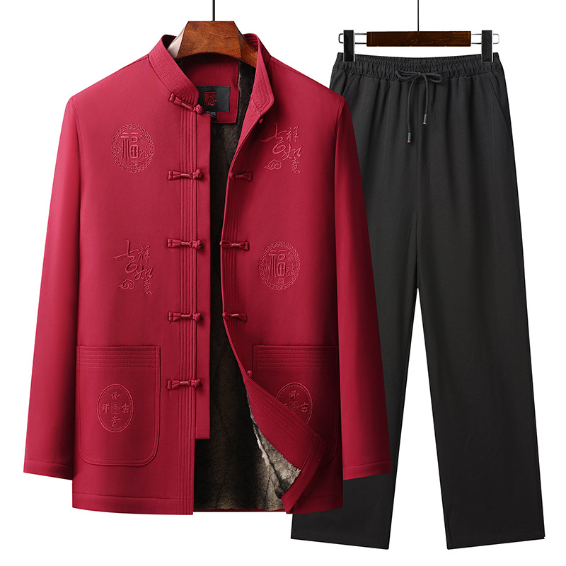 秋冬唐装男加毛保温セット中国風新中国式紳士服盤ボタンコート復古綿服
