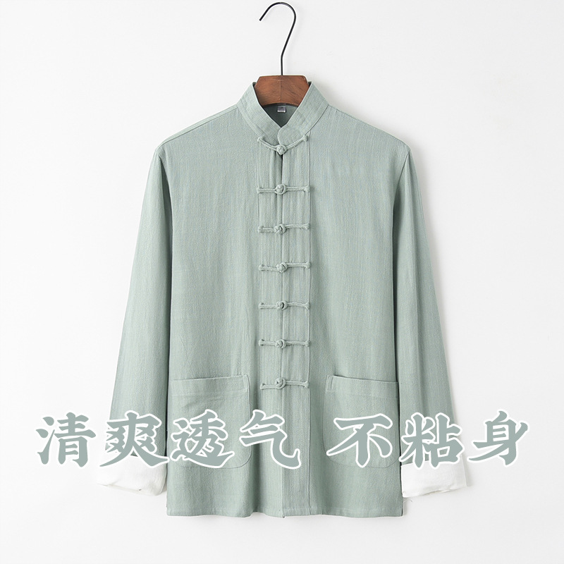 唐装男おじいさんカジュアル夏服中国式中高年夏長袖綿麻上着漢服薄い
