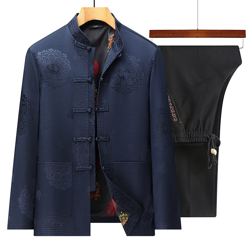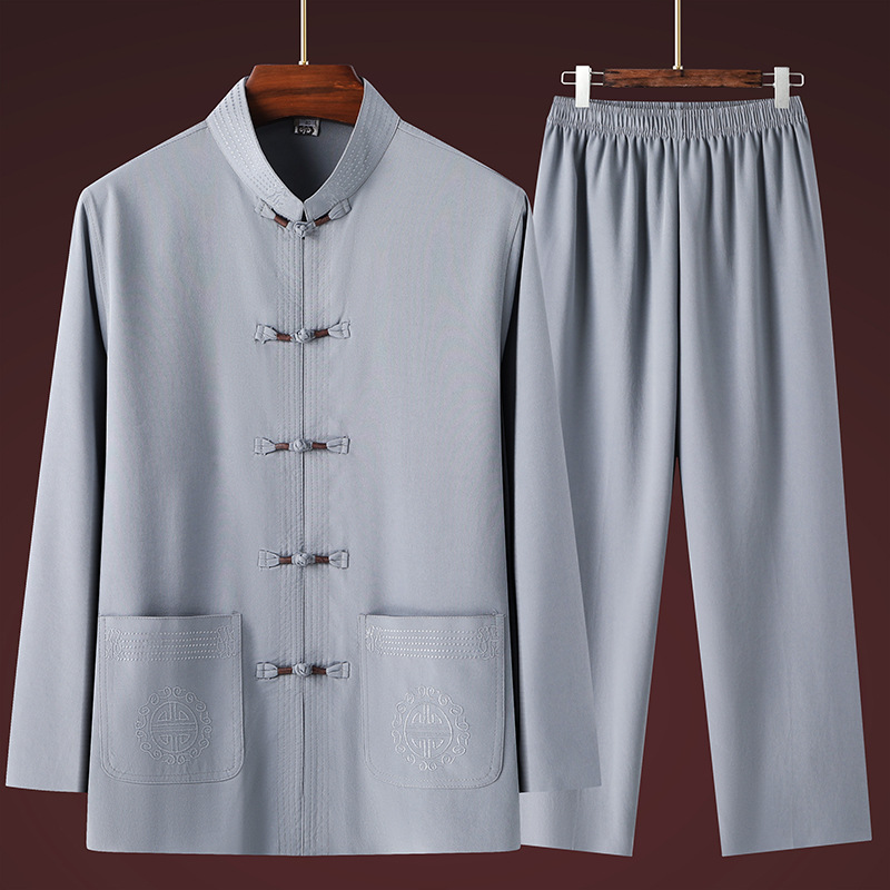 中高年レトロ唐服2点セット春秋長袖中国風紳士服カジュアルスーツ中国式セット