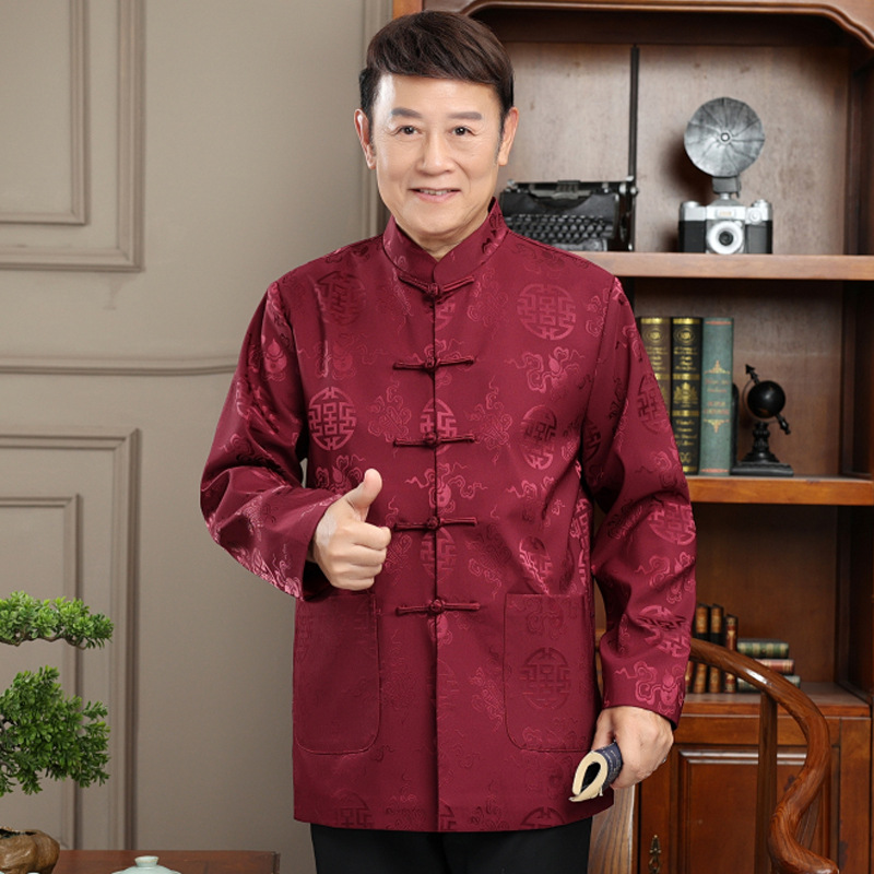 春秋中老年唐装男中国風立襟ジャケット老人父装誕生日寿古風祖父