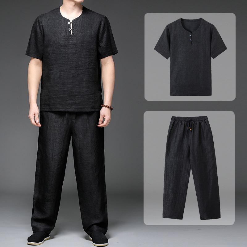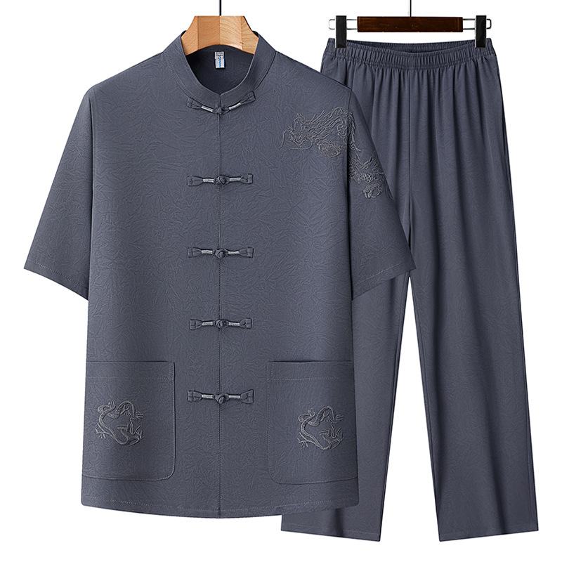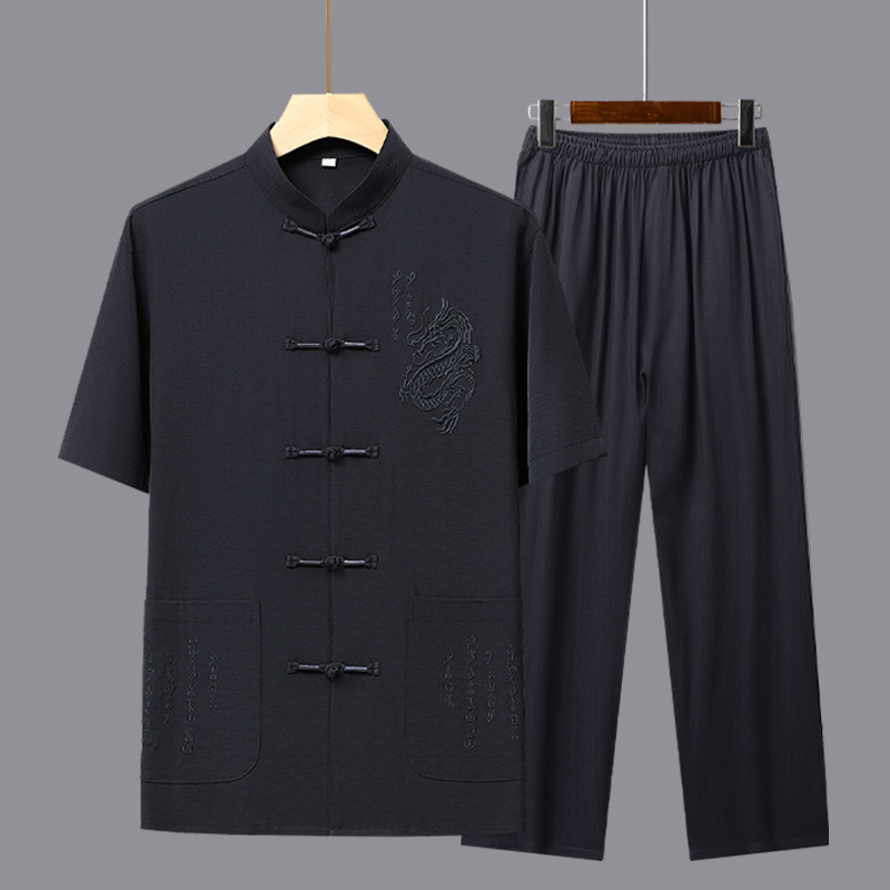 中高年男性向けの夏のスーツ、カジュアルで軽くて通気性のある半袖ズボン、お父さんとおじいちゃんの2点セット、太極拳スーツ、唐スーツ
