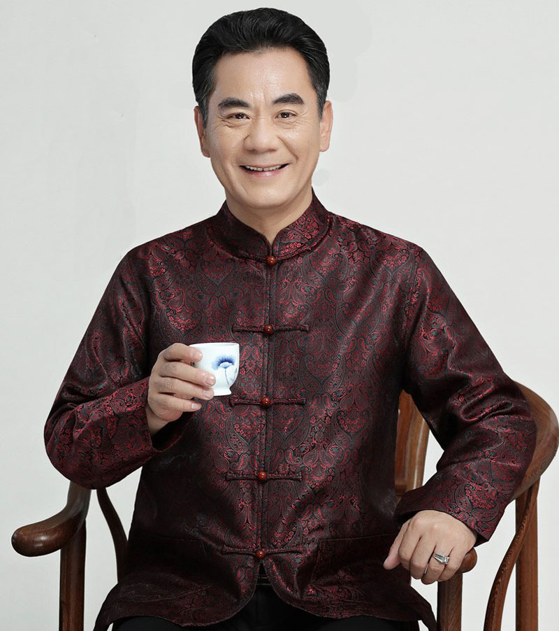 中高年男性用唐装七扣祥雲長袖チャイナ風メンズ服ゆったり中華風太極拳服新中式