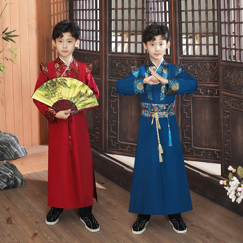 漢服子供男性 2025 春と秋の古代スタイルの大きな子供服中国風改良唐装ローブとガウン中国学服
