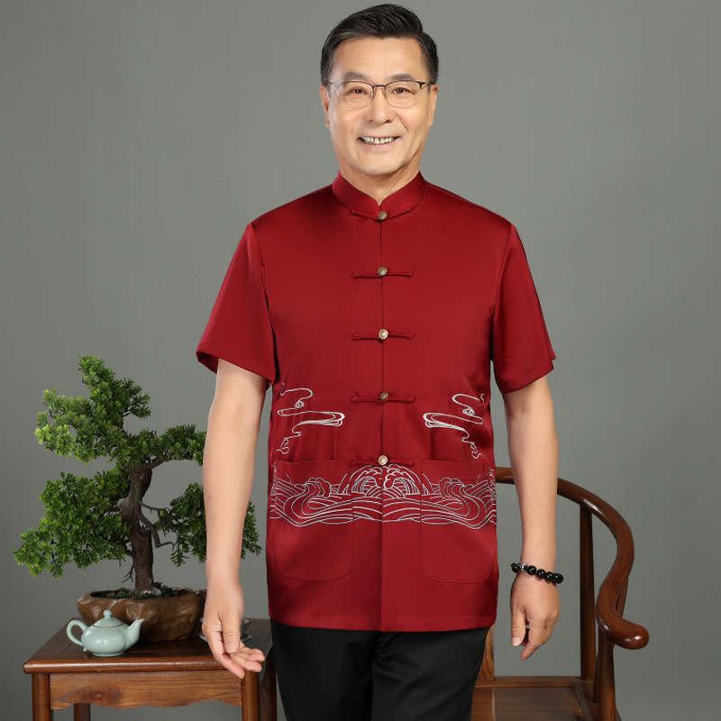 唐装メンズ薄手半袖お父さんシャツ中高年夏服おじいちゃん誕生日スーツ中国風トップス
