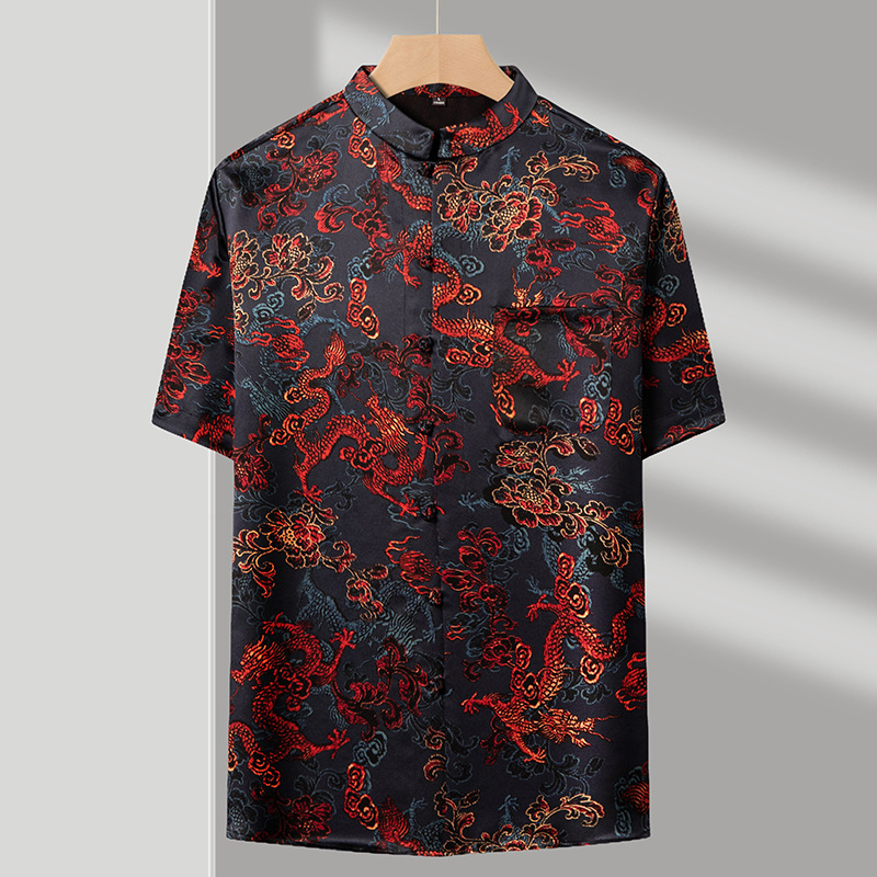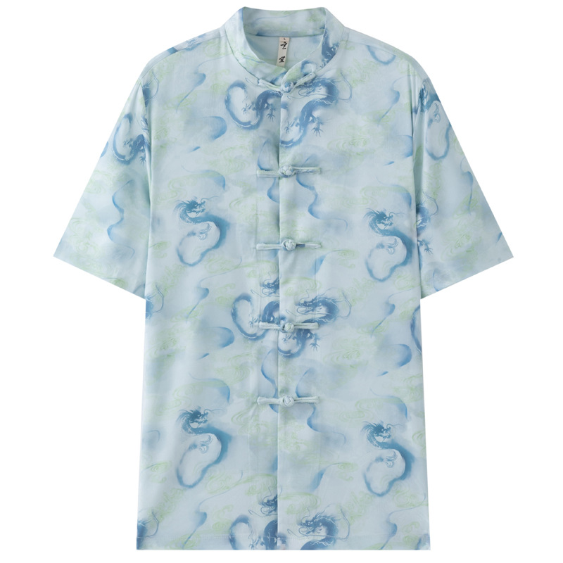 新中国式改良唐装男夏半袖龍紋プリントゆるいファッション中国風復古盤ボタン上着男