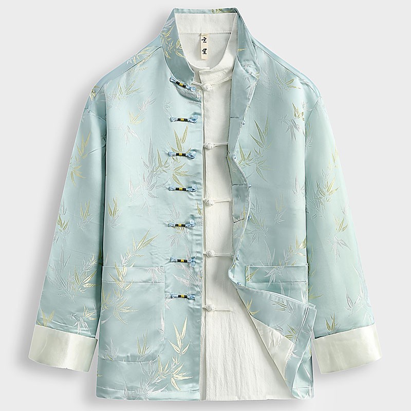 春の中国風唐装コート男性中国式改良長袖コートオリジナル盤ボタンパンダジャカード上着男性