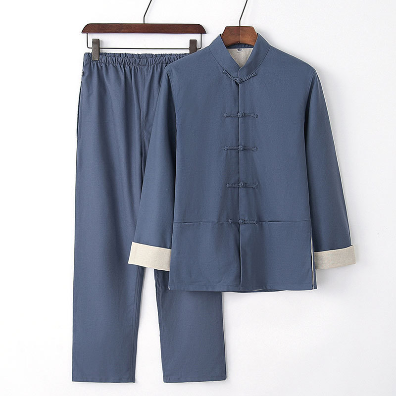 老人唐装男青年中国風コート中国式服装漢服男復古古風亜麻セット居士服