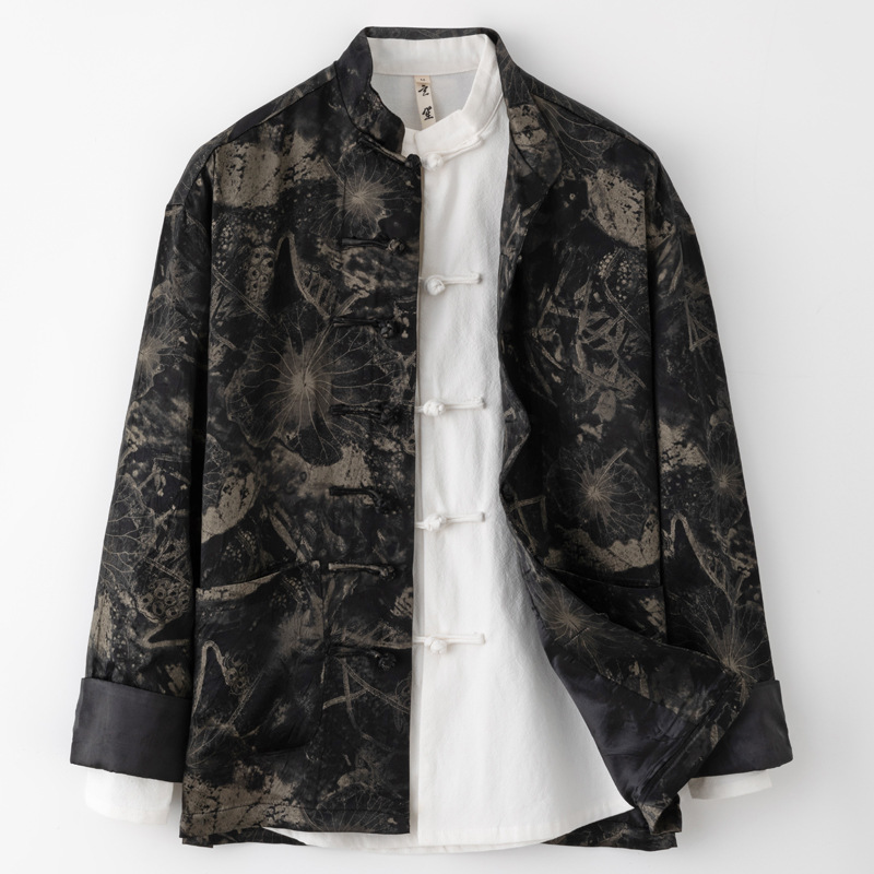 春の新型唐装男中国風国潮中国式改良長袖绢糸コート中国式プリント上着