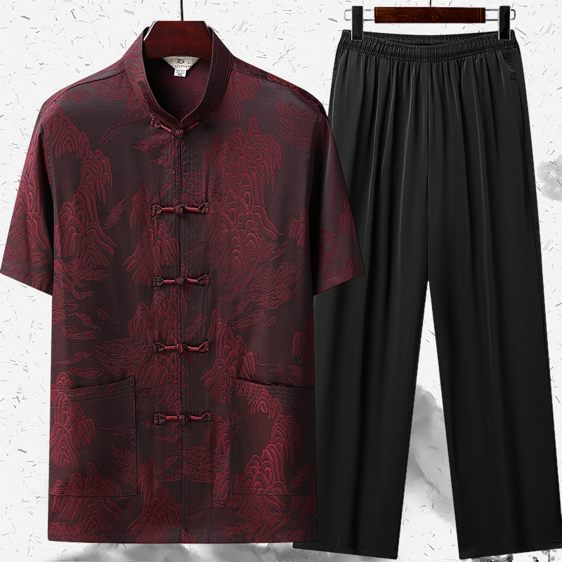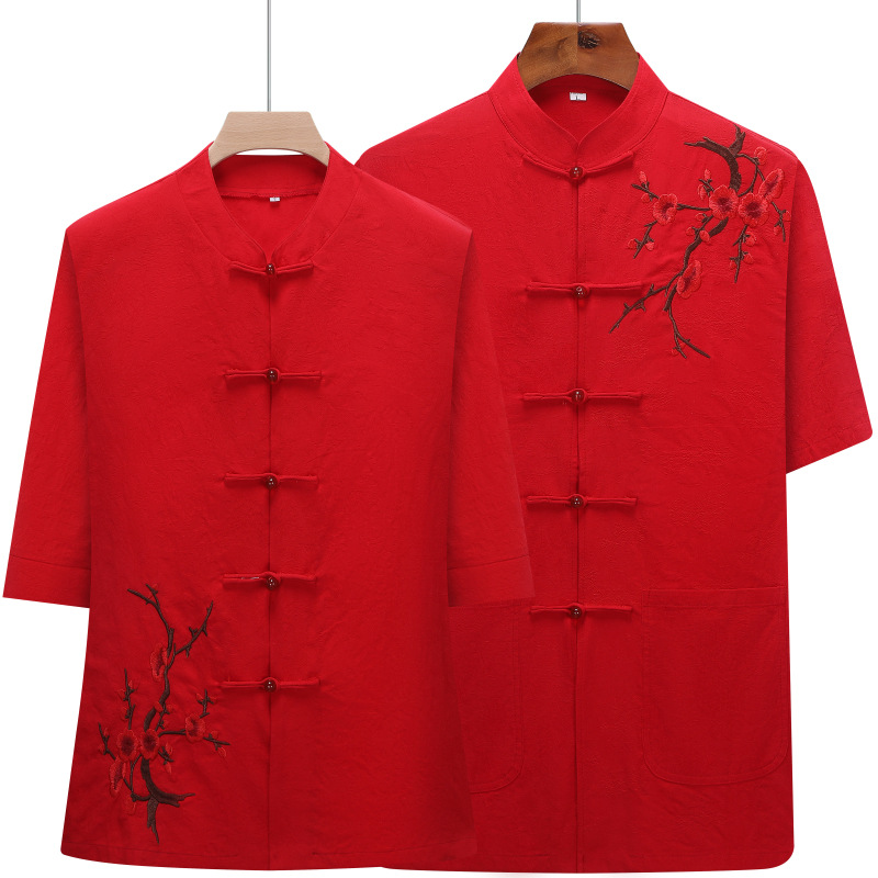 新しいエスニックスタイル唐スーツ男性中高年カジュアル半袖夏漢服スーツ誕生日高品質お父さんスーツ