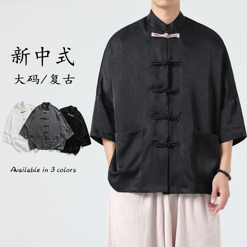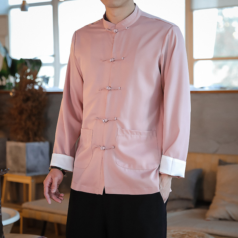 中国風唐装立襟ジャカード盤ボタンシャツ