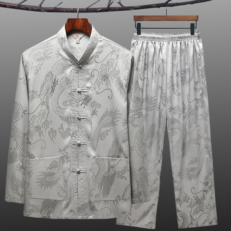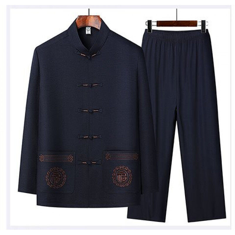 中高年男性用唐装七扣祥雲長袖チャイナ風メンズ服ゆったり中華風太極拳服新中式
