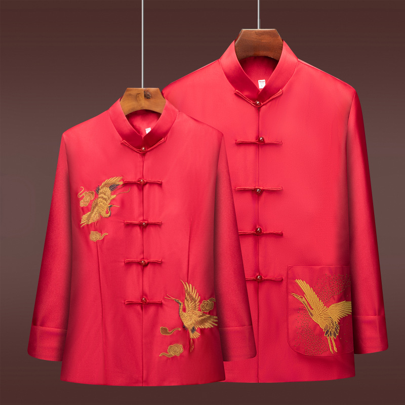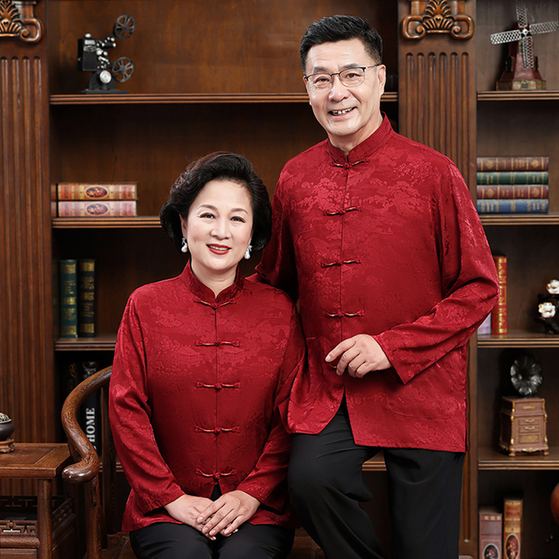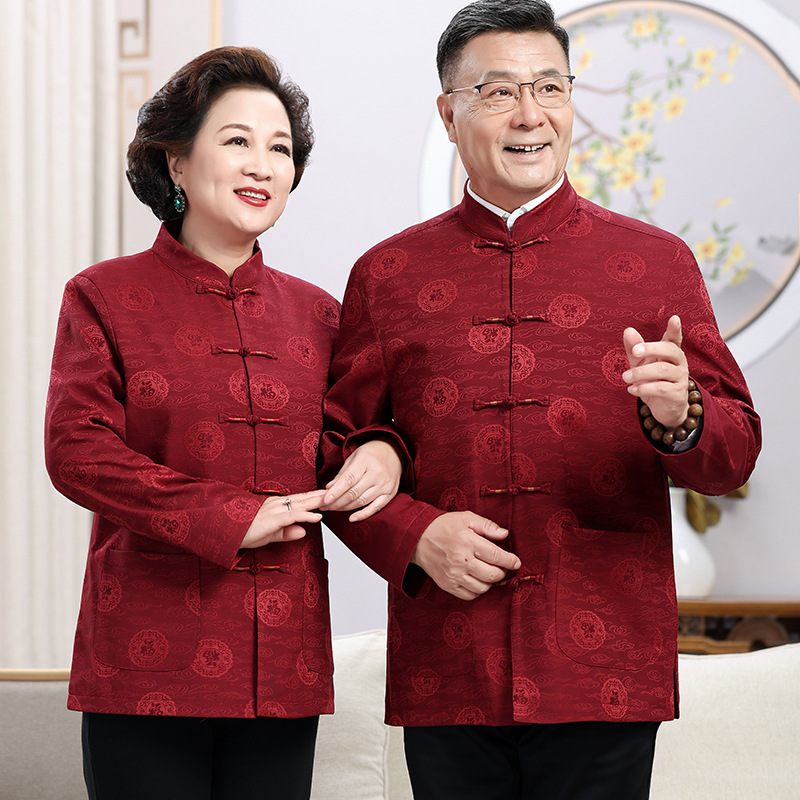中高年長袖唐装男女中国風両親披露宴装高齢者服誕生日過寿父母