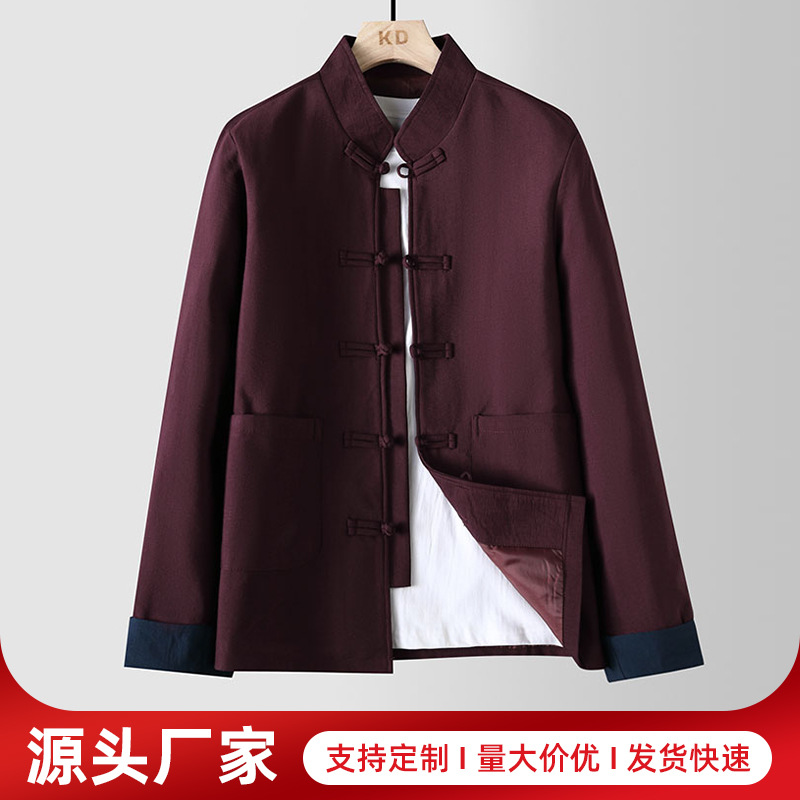 唐装メンズ漢服スーツ綿麻居士服中国風高齢者用コート春秋盤扣禅服中年男性服