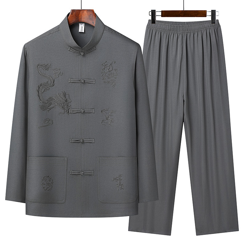 刺繍入り龍柄メーカー卸売唐装男性中高年お父さんセットおじいちゃん父親龍トーテム夏物
