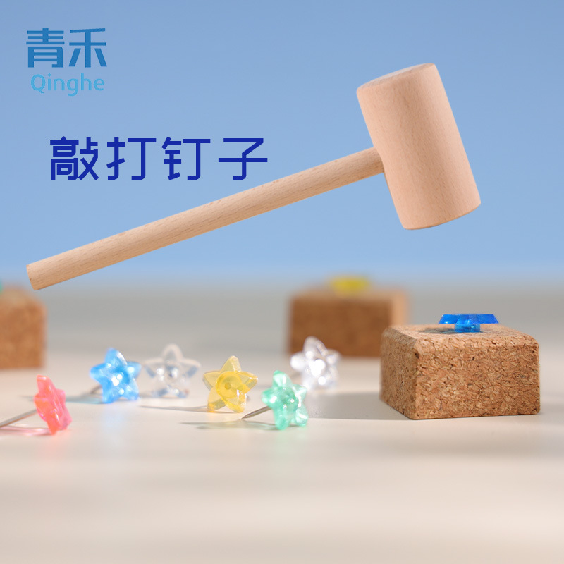 モンテッソーリ教具、釘打ち、日常生活、鋲打ち、子供の手と目の協調、ブナ材のハンマー、感覚の発達