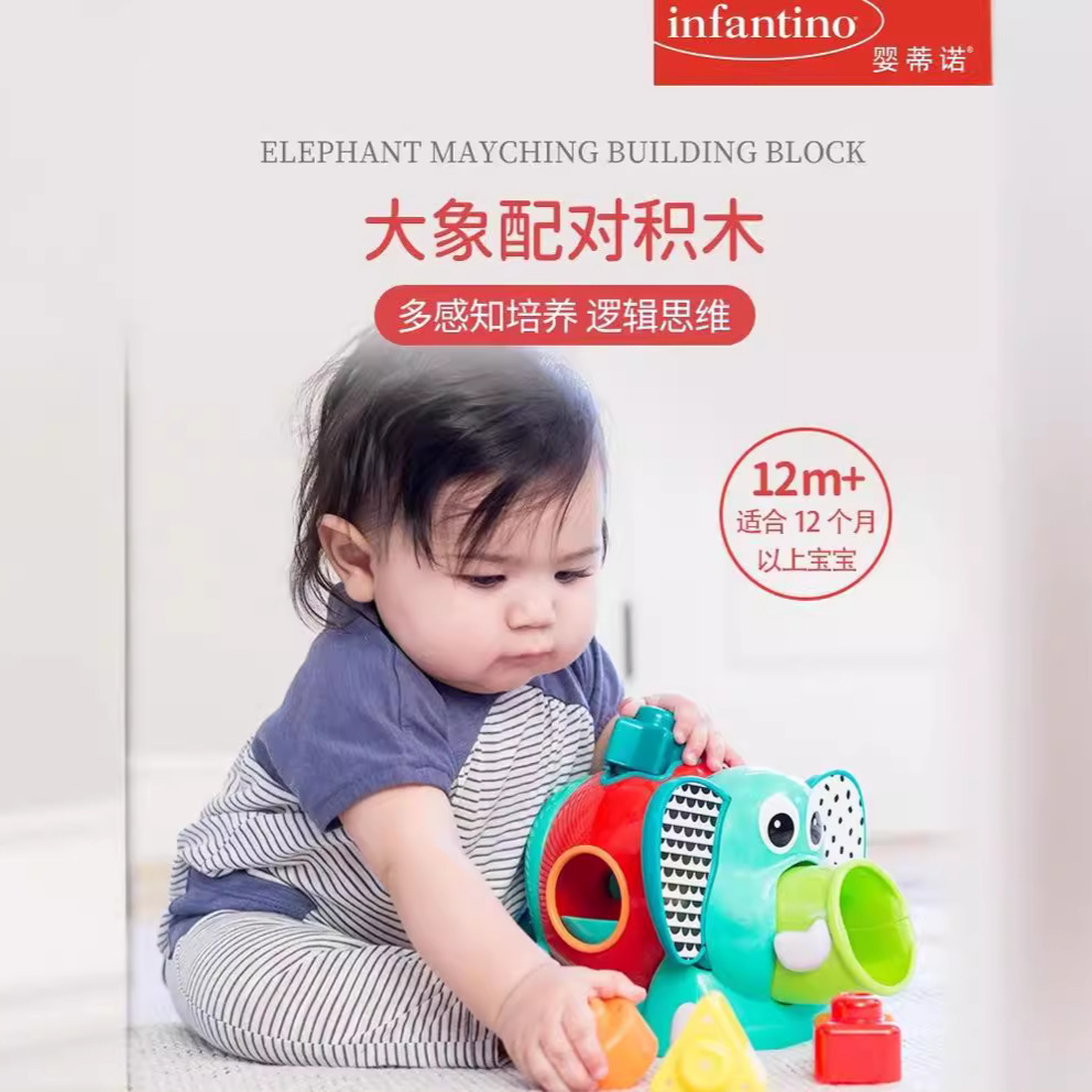 Infantinoアメリカの赤ちゃんティノ象ペア積み木動物人形形ペアパズル早教