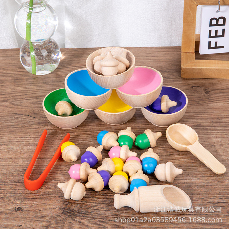蒙氏早教木製クリップビーズ色分類カップ形状ペア早教2-3歳男の子玩具卸売り