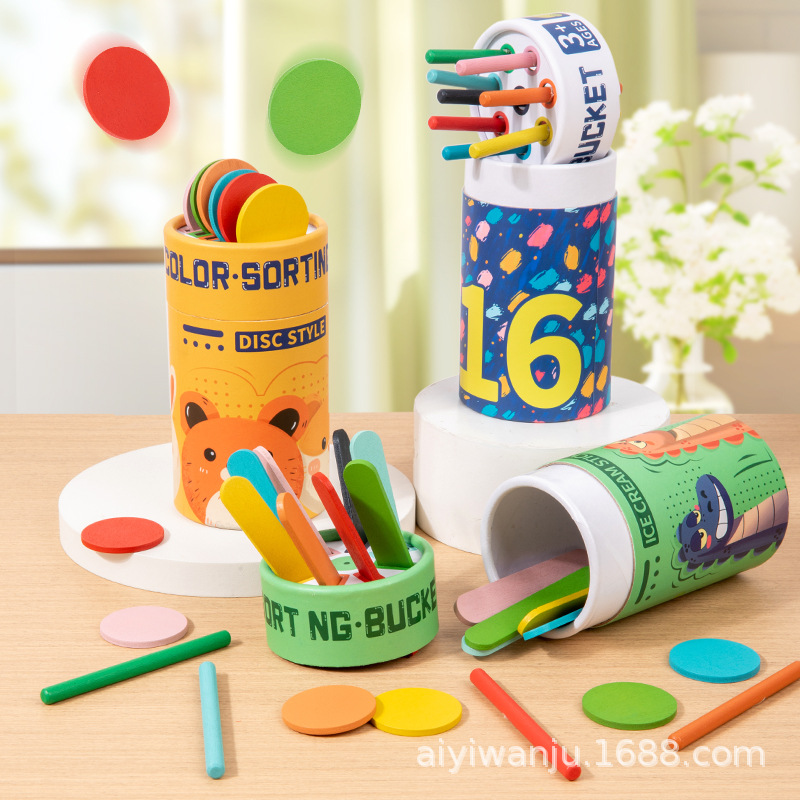 子供の益智色分類筒1-3歳の赤ちゃんの色認知幼稚園の蒙氏早教分類桶玩具