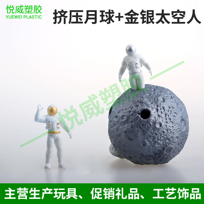 新商品の宇宙飛行士が月の宇宙飛行士を押し出して月と金銀の宇宙飛行士のスーツを押し出します。