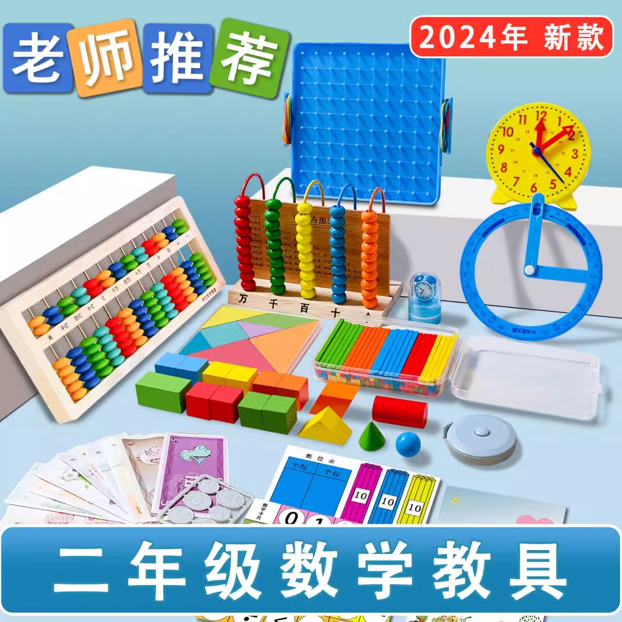 小学二年生向け算数教材セット:釘板、時計、数棒、立体図形、平面教材セット、知育玩具