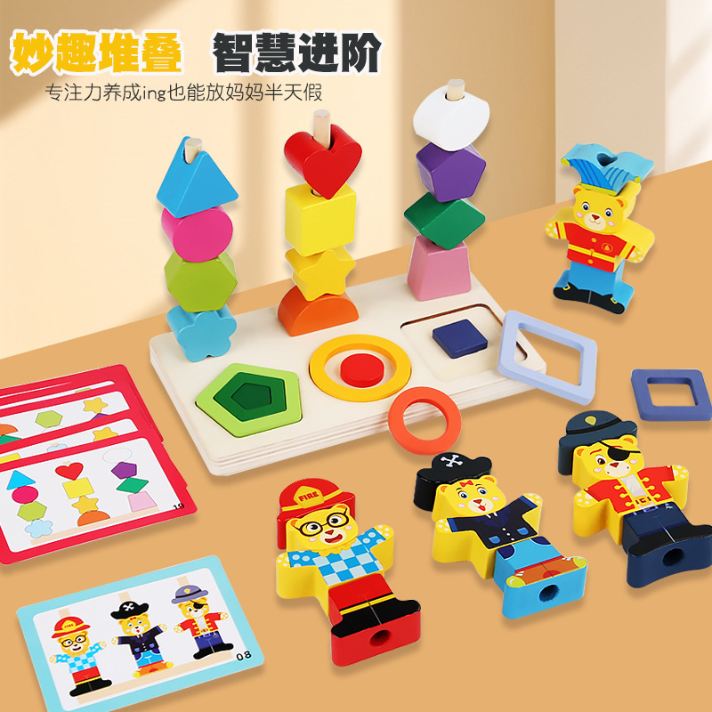 クロスボーダーCECPC子供の熊の形の柱の積み木の積み重ねの高い赤ちゃんは早く論理の思惟の訓練の益智を教えます。